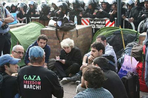 Quelques sympathisants de la Plate-forme Charleroi-Palestine se sont réunis ce samedi 6 janvier afin d’exprimer leur soutien à Mick Napier, membre fondateur de la Campagne écossaise de solidarité avec la Palestine