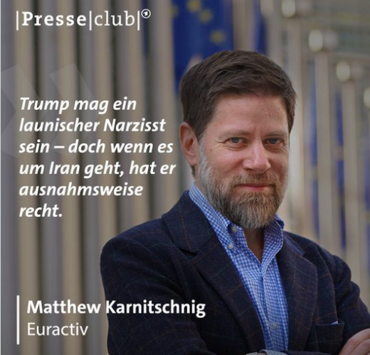 À la mi-janvier, il avait soutenu explicitement les cliquetis de sabre de Donald Trump. Le président américain, avait expliqué Karnitschnig lors d’une émission de la chaîne allemande ARD,