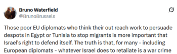 Comme l’offensive génocidaire contre Gaza s’était intensifiée en octobre 2023, Waterfield avait insisté en disant qu’Israël se défendait tout simplement. Plus tard, il allait recommander la lecture des écrits de Primo Levi, un survivant de l’Holocauste, afin d’aider à comprendre pourquoi « Israël existe, résiste et persiste ».